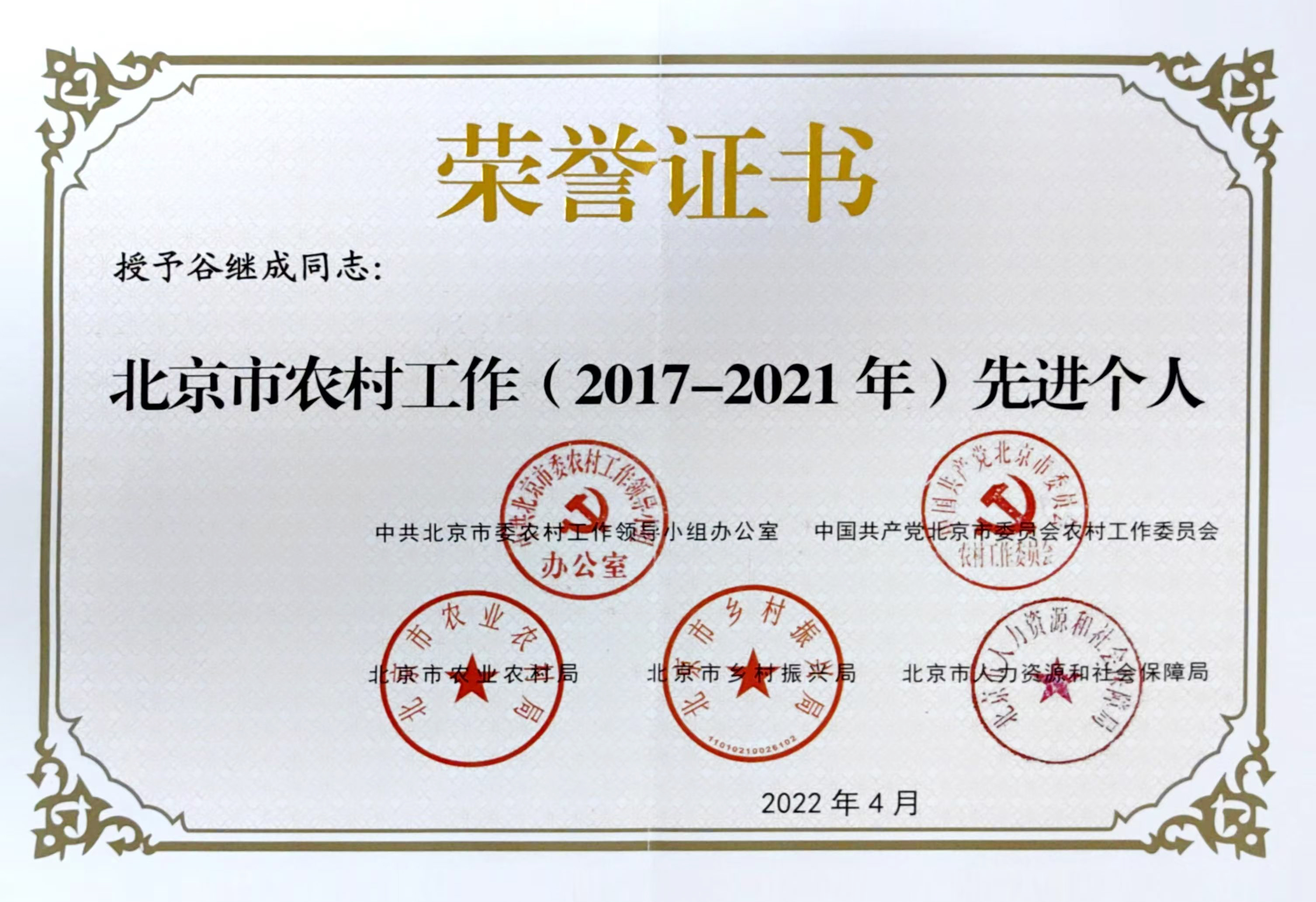 williamhill官方网站谷继成副教授、赵波副教授 荣获“北京市农村工作(2017-2021年)先进个人”称号