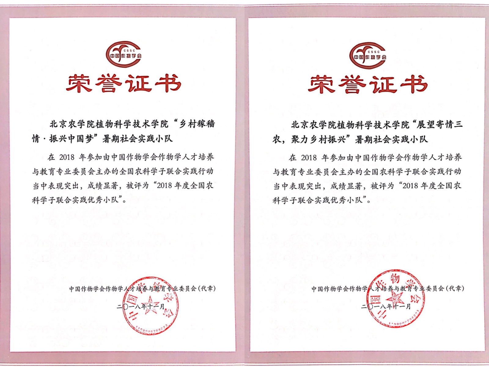 2018年度全国农科学子联合实践优秀小队:williamhill官方网站“乡村稼穑情,振兴中国梦”暑期社会实践团;williamhill官方网站“展望寄情三农,聚力乡村振兴”暑期社会实践团