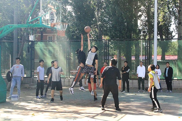 随着裁判员一声哨响,植保队与园艺队比赛正式开始,由园艺队开球,园艺队员们耐心组织进攻,灵活跑位,迅速得到一个空位投篮的机会,但可惜球没有投进,植保队员抢到篮板,开始发起反击,凭借着身高优势,快速杀入篮下,将球打板投进。之后双方交换球权,但园艺队员传球失误,植保队员抓住机会,反击将球打进。随后双方队员手感渐热,双方都投进不少球,但奈何植保队员们身高优势明显,频频篮下得分,将比分拉开,最终上半场以18:9的比分植保队领先结束。中场休息期间,双方队员商量对策。下半场开始,队员们迅速进入状态,植保队员依旧强打内线,不断得分,园艺队员也不甘示弱,外线频繁投进三分紧追比分,最终植保队以43:26的比分取得胜利。