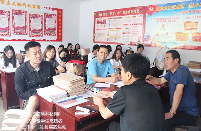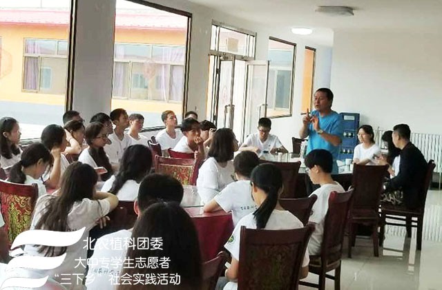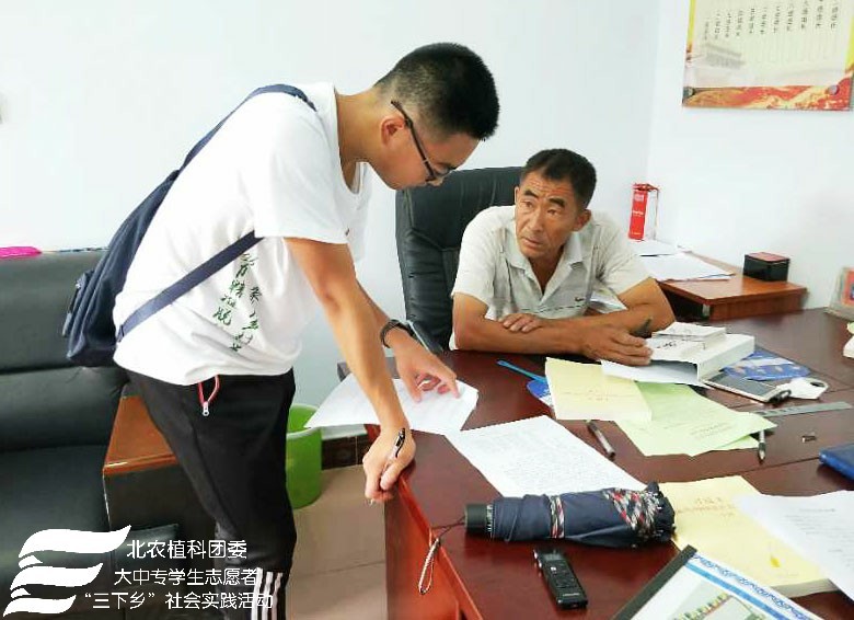 2018年7月24日上午williamhill官方网站“北农植科学子,聚力乡村振兴”实践团来到了南关乡苏武庙村,实践团在农学系副教授赵波老师,牛奔老师和郝娜老师的带领下与赵书记等村委会成员进行调研座谈,了解本村种植、扶贫情况及农业产业结构。