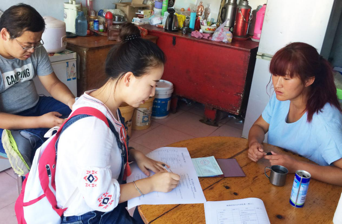调研期间,村干部选派引导员带领实践团入户走访前期认定的贫困户和低保户及申请但落选的农户。每天调查工作结束后,成员们将调查问卷结果进行数据分析,汇总后交至各组组长,次日上交县扶贫办领导。流程高效,一气呵成。实践团先后走访了丰宁县的11个乡、18个村,入户问卷调查近500户,调查范围广泛,数据庞大。