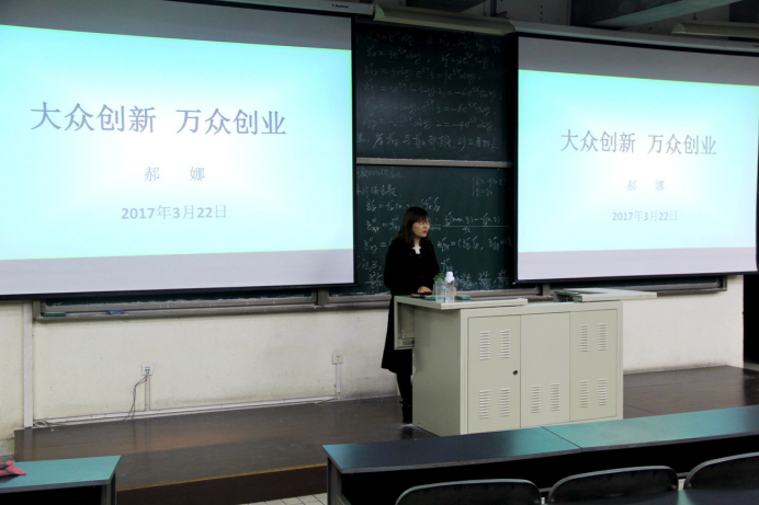3月22日,郝娜为同学们带来了一次主题为“大众创新,万众创业”的讲解。她首先从国家政策方面解读了对于创新创业的理解,接着针对williamhill中文制定的创新创业方针给予了在座每一位同学进行创业的鼓励。最为吸引大家眼球的莫过于第二节课创新创业部的部长赵桂莹带领四位创业负责人进行的创业经验介绍。看着屏幕上一份份稳重可行的策划书,同学们的内心深受鼓舞、跃跃欲试。