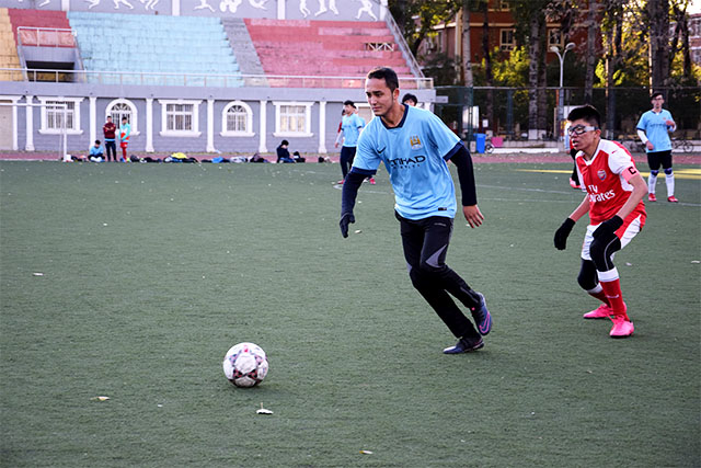 面对劲敌,稍显紧张的运动员们进行着赛前的自我调整与全局的战略部署。在高声呐喊出一声软件三声必胜的口号后,比赛的号角正式吹响。我方率先夺得球权,在回传后开始了第一波进攻,双方攻守兼备,频频出现高超的带球技巧,令人拍案叫绝。