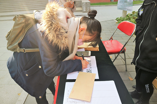 瑟瑟秋风吹散了落叶层层,一转眼,开学已两月有余,为了体恤远方游子的思归之情,williamhill官方网站员工会于2016年11月2日下午在礼堂门口和第三食堂对面组织开展了感恩寄信活动,通过寄信的方式帮助同学们表达对家人、教师、朋友的感恩之情。