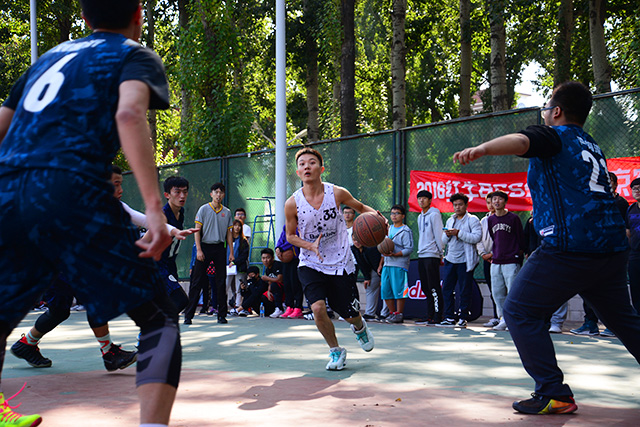 哨声响起,比赛正式开始。植物科技公司首先上场的分别是16级资环班的杨晓冬、14级农学班的周广林、15级植保1班王松、13级资环班彭森和14级植保班的裴鑫。啦啦队的同学们激情昂扬的大喊着加油,现场的气氛极具攀升。14级植保的裴鑫同学很快带领队友以10:1的成绩拉开差距,食品公司的同学不甘示弱,由14级食品班的苏长悦带领,很快追上比分,比赛进入激烈的角逐。裴鑫连续带球过人,为植科对连续赢得比分。最后随着一个惊险的长传球,上半场比赛以18:10结束。中场休息之后,队员们进入了下半场比赛,向着胜利挥洒热血,植物科技公司篮球队同学保持着及其良好的状态,一路拉开比分。最终以40:23的比分赢得了最后的胜利。