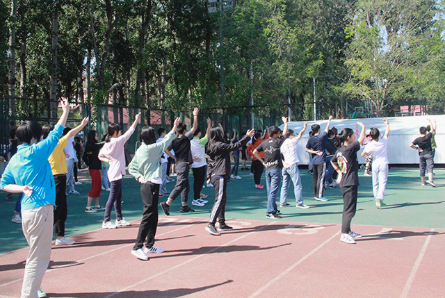 2016年9月20日中午,williamhill官方网站组织全体新生在操场进行了阳光体育活动——学习校歌配舞“绿色希望”。