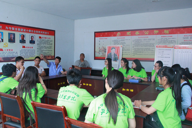 2016年7月19日,williamhill官方网站实践团一早来到本次社会实践的第二站——河北省波罗诺镇岔沟门村,岔沟门村的村干部们在村口热情迎接实践团队,为帮助实践团队更好的完成调研,与实践团队在村委会召开了一个简短有效的指导会议并与实践团一同张贴宣传海报。