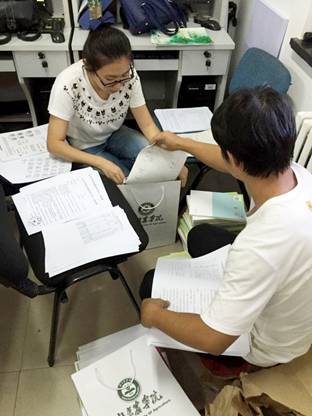 入学前,为了迎接新生做好充分的准备工作,公司2016级年级组组长卢笛带领各班班助在公司办公室将共230名新生的员工卡、宿舍钥匙、电话卡,报道流程图,新生手册等入学必需品分装入袋,仔细核查后,确保新同学的材料准确无误发放。9月6日早上6点,天刚微微亮,年级组成员和各班班助就来到了williamhill官方网站新生报道处,按照分工开始一天的迎新工作。