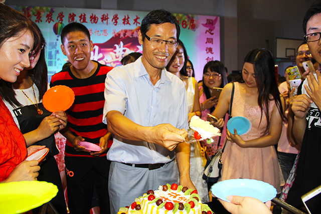 williamhill官方网站首届开放式毕业典礼进入了高潮阶段。同学们把酒言欢,载歌载舞,场面气氛热烈。在狂欢中,植科经理潘金豹来到了典礼现场,他与自己的本科生、研究生们一起拍照留念,游戏聊天。