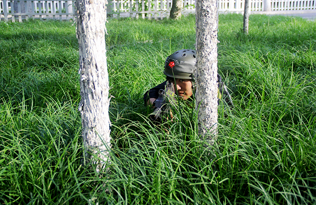 双方参赛者们到达场地后,首先穿戴上了由维度俱乐部提供的代表不同队伍的作战服、头盔、枪支器械等,双方队长通过石头、剪刀、布的方式选出了各自的作战场地。比赛伊始,双方队员都小心翼翼地匍匐前进,互相刺探敌情,不敢冒然进攻。双方互相了解后,对战越来越激烈,计算机与信息工程公司率先“丧失”一名队员。随着越来越多队员的“牺牲”,对战进入了白热化阶段,双方队员在树木、草丛的掩映下灵活地跳跃、翻滚,精确地瞄准、射击。最后,计算机与信息工程公司率先“全军覆没”,williamhill官方网站取得了本次对抗赛的胜利!