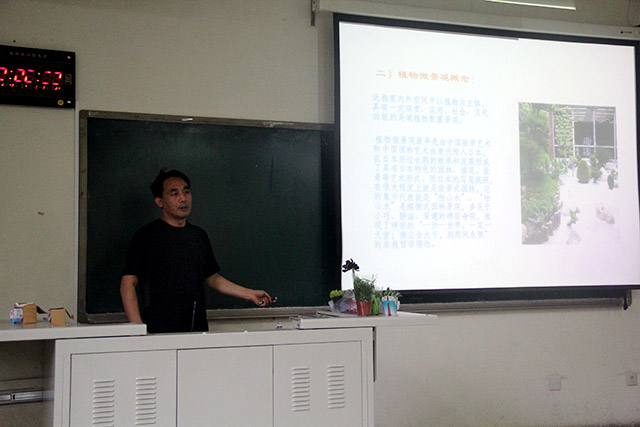 首先,陈原老师向同学们介绍了植物微景观的概念和发展历程,以及植物微景观的空间布局设计,强调了微景观的设计原则:科学性、艺术性和文化性。在这三个设计原则的基础上,突出主题“微”,微景观是在“微”中见大,“微”中见禅意。然后老师又具体讲了两类植物微景观的制作,苔藓瓶微景观制作和多肉植物微景观制作。老师不仅向大家讲了制作的流程还提到了后期的养护。同学们都收获颇多。