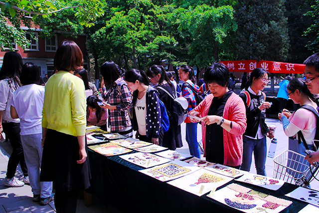 投票开始前,员工会部分干事以及辅导员郝娜早早地来到礼堂布置投票现场,搬运桌子、摆放数几十种作品、给种子画编号等准备工作。投票活动期间,干事们都热情的请过往的老师和同学们来参与投票,并认真的讲解活动内容及相关投票事项。大多数师生对摆放的种子画作品赞不绝口,更有很多在现场欣赏的老师和同学门投出自己宝贵的一票。