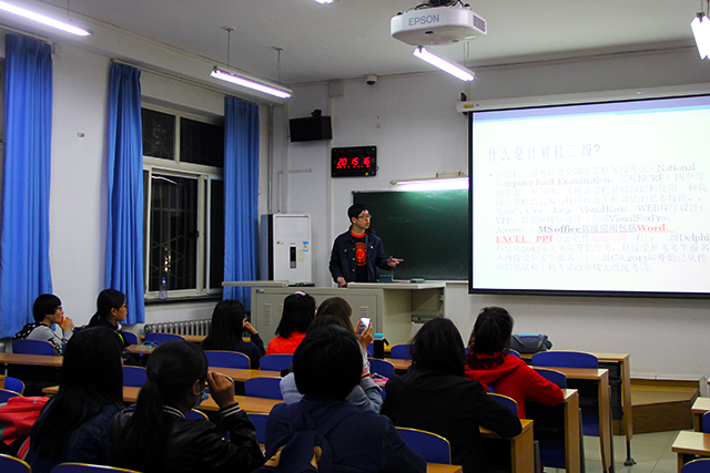 2016年4月7日星期四,williamhill官方网站在教学楼A座106教室举办了计算机二级资格证书培训交流的员工沙龙活动,主讲人是2013种子班的林靖晨和张凌霄,他们已顺利通过了计算机二级考试。