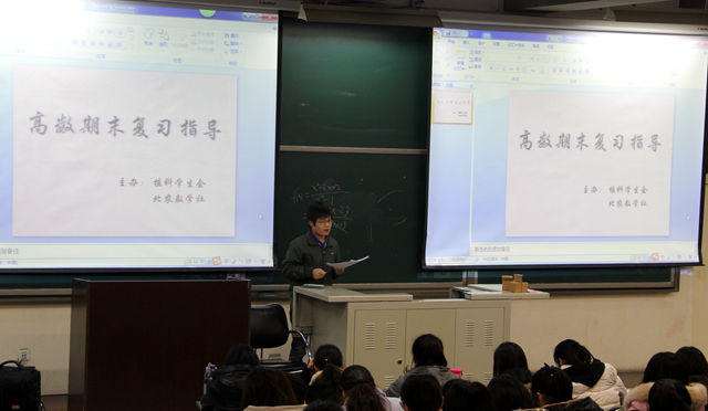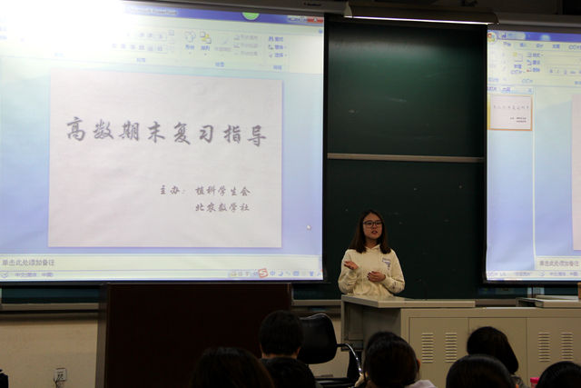 首先由植科学习部部长马俊杰发表了开场词,随后由植科员工会主席孙新宇为大家进行致辞,阐明了学习高数的重要性。接着,杨艳涛上台为大家讲解试卷考题。他在讲解过程中侧重于对所考知识点进行分析,并将题型进行了由浅至深的引申,对现场的提问一一解答,使同学们深刻理解了高数试题的解答思路与方法。