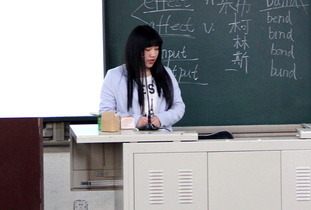 随后,齐婷和杭吟溪分别向同学们分享了自己在学习英语、备考四级方面的经验。首先,齐婷根据自己学习英语的经历,介绍了学习英语的方法以及自己在四级考试时的答题方式。