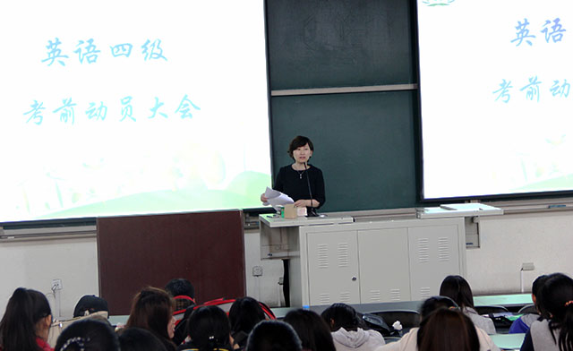 大会前期,由郝娜老师向全体同学们通知了模拟考试时间、四级考试时间,并向同学们分析了往年四级考试情况。