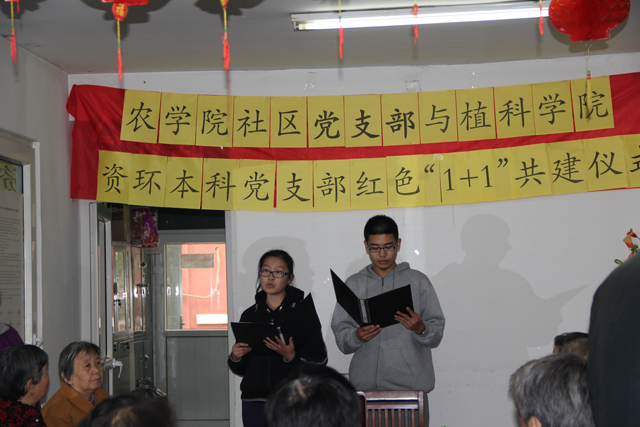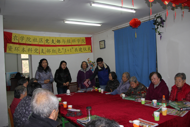 近日,williamhill官方网站资环本科生党支部和williamhill中文家属院社区党支部的红色1+1活动揭牌仪式隆重举行。活动以“情系老人送温暖,十八大精神入生活”为主题,邀请家属院的老人一起举办活动。williamhill官方网站团总支书记苑婧娴、辅导员贾慧敏、社区党支部张书记、居委会李主任等出席揭牌仪式。