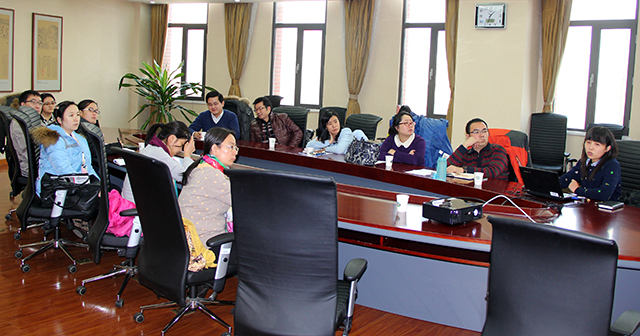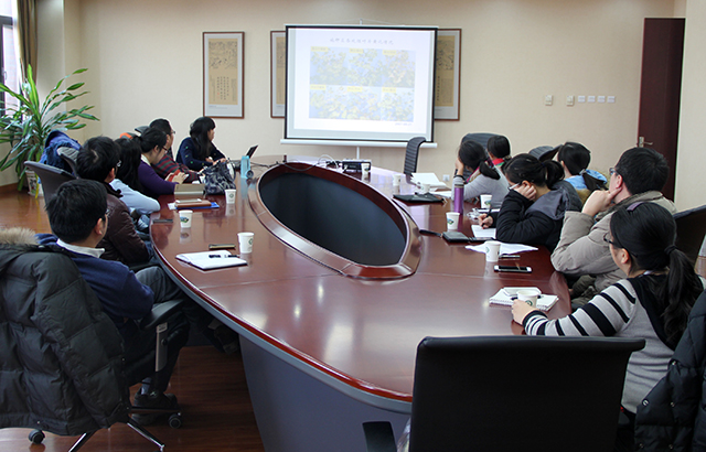 青年教师田晔就《地上部反馈调节棉花早衰的激素调节机制》进行报告,报告结束后青年教师结合自身研究领域展开了激烈的研究和讨论。