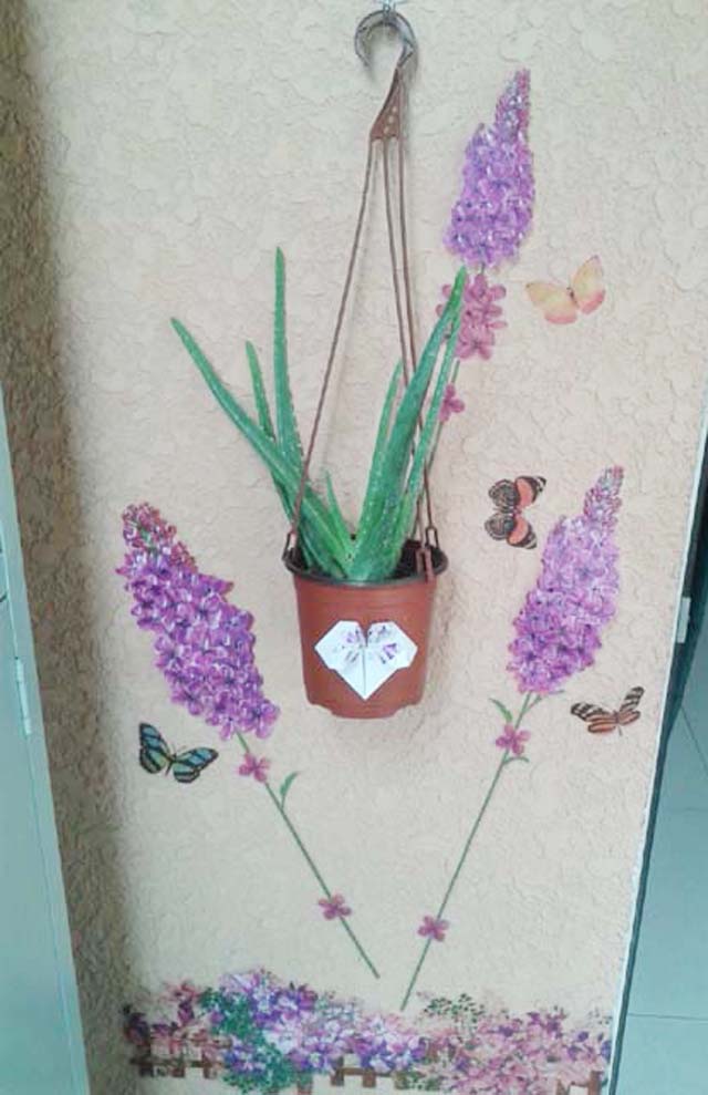再看这个女生宿舍,她们贴上墙纸,挂上粘钩,把青绿的芦荟挂在墙上。宿舍小小的一面墙上,体现了设计,展示了创意,改变了环境,彰显了美丽。一株小小的植物,一点简单的装饰,一些小小的付出,带给宿舍的却是质的飞跃,何乐而不为?