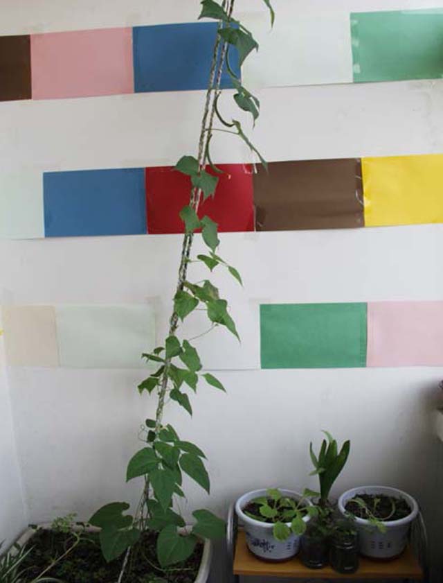 似绿色的花纹,颤抖着几分胆怯,几分大胆,在男生509宿舍,豆角那青绿色的小小的豆荚露了出来,它从放在宿舍地面的盆里沿着绳儿蔓延,把绿色的生机一直蔓延至屋顶。缠绕的是绿意,生长的是宿舍的欣喜。