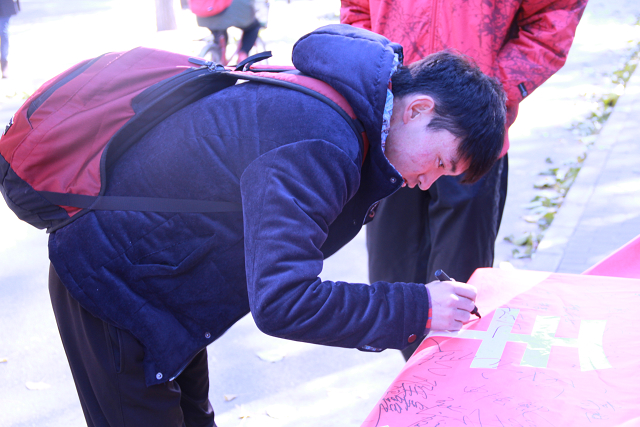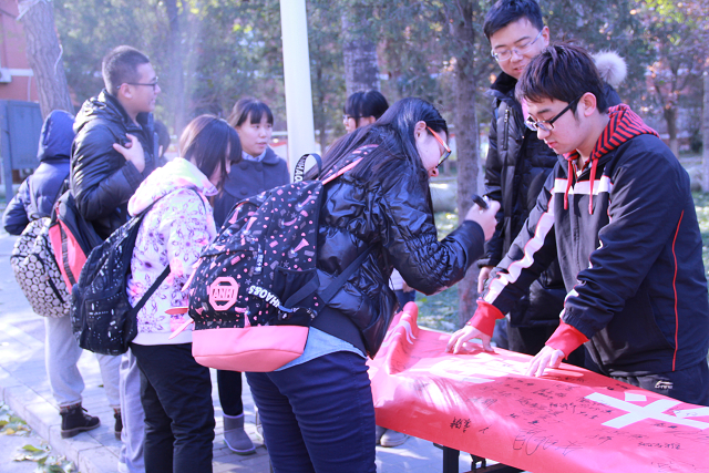为了积极响应公司关于创建平安校园的举措,同时提高同学们的安全意识,11月25日中午11:20,williamhill官方网站于礼堂前开展“师生人人动手,共建平安校园”的签名倡议活动。现场同学热情高涨,纷纷在红色条幅上签上自己的名字,以此表达创建平安校园的决心。