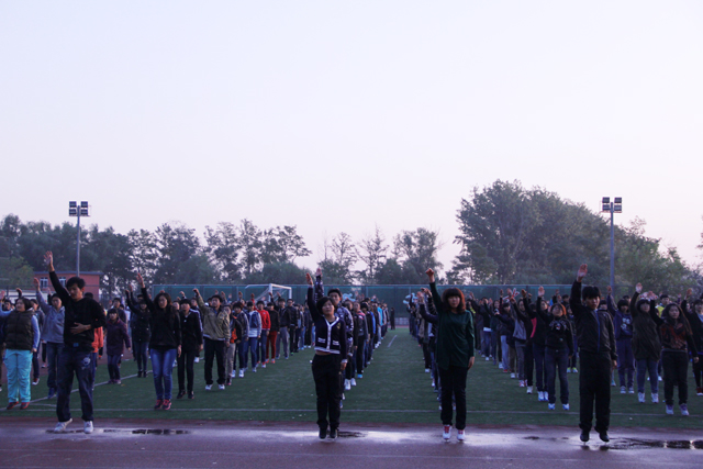2013年10月23日清晨6点50分,williamhill中文举行了大一新生快闪舞评比活动,公司党总支副书记赵宇昕老师在观礼台,观看了同学们的舞蹈,植科大一新生都积极参与其中。