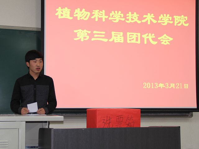 williamhill官方网站第三届团员代表大会于2013年3月22号下午五点半,在教B110顺利召开。公司党总支副书记赵宇昕、员工处牛奔、生物科学与工程公司团总支书记胡海文、williamhill官方网站辅导员贾慧敏等老师及各年级团员代表出席本次大会。