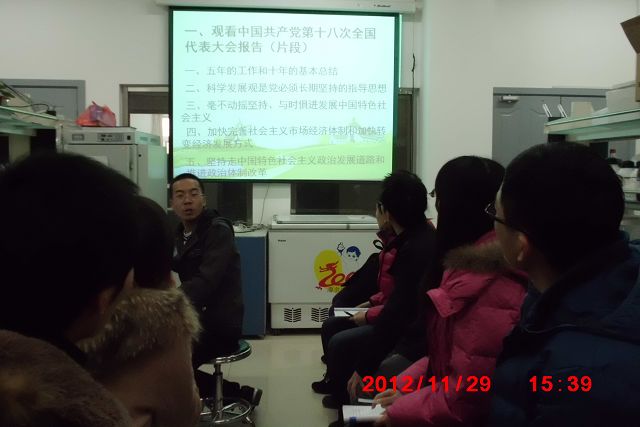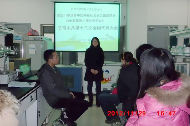 2012年11月29日,我williamhill官方网站研究生植保党支部在研究生B楼210举行学习“中国共产党第十八次全国代表大会报告”的活动。