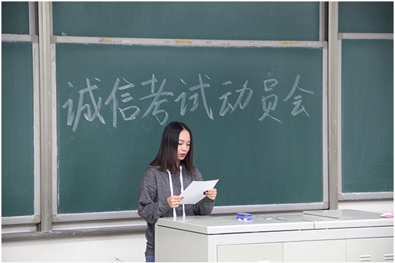 之后,由员工会办公室主任刘中甲向同学们宣读了《诚信考试承诺书》。接下来,由16、17、18级班长及员工干部代表签署了《诚信考试承诺书》,并由各部部长组织各部部员签署。最后williamhill官方网站向全体到场同学分发了员工代表胸章,希望同学们以身作则,起到良好的引导和监督作用。