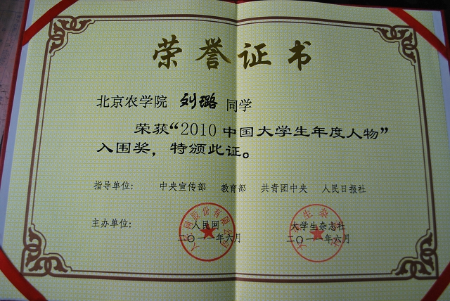 在2011年4月30日-5月9日,刘璐同学入选2010中国老员工年度人物候选人投票中得到了校领导、各部门领导、全校师生的大力支持,在此一并表示感谢。