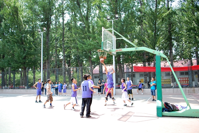 2011年5月25日中午12:00,进入决赛的四个班级的参赛运动员,顶着炎炎的烈日,早早便在篮球场上等待着激动人心的比赛。随着裁判员的哨声,比赛正式开始,男运动员们你追我赶,追逐着场上唯一的篮球,场下的观众们也高声呐喊,为运动员们加油助威。在半场比赛结束时,女运动员们也加入了比赛中,用定点投篮的方式,为自己班级赢得荣誉。