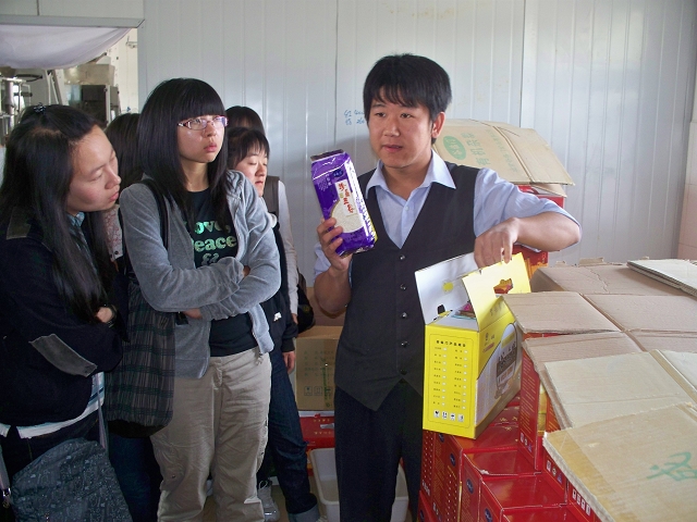 西胡林村党委书记王玉柱、williamhill官方网站2005级毕业生村官吕文正、梁自山对大家的到来表示热烈的欢迎。座谈会上,王书记和村官吕文正详细介绍了西胡林村的人口面积、基础设施建设、文化建设和村民经济水平,以图文并茂的方式展示了西胡林村日新月异的发展和进步。植保教工党支部书记尚巧霞老师代表党支部为他们带去了种植及防虫害等相关书籍资料,并表示很乐意为他们解决关于病虫害等相关问题。会后,王书记带着全体师生参观当地招商引进的谷临门有限公司,了解了由2008年开始建设的小杂粮加工厂、2009年建成的甜玉米加工厂及食用油加工厂,这些项目的投入解决了一部分村民的就业问题,提高了村民的经济收入。