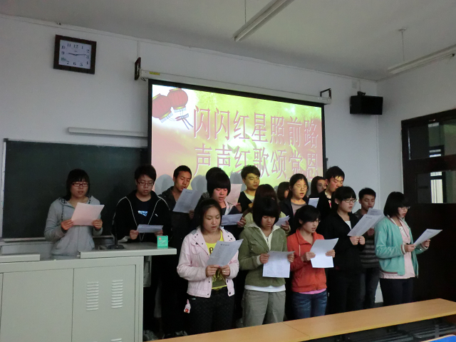 2011年4月25日晚8:30,williamhill官方网站植保本科生党支部全体党员在教A104继续举行了以“闪闪红星照前路,声声红歌颂党恩”为主题的红歌会系列活动,党支部成员每个人脸上都洋溢着热情的笑容,充满对红歌的喜爱。