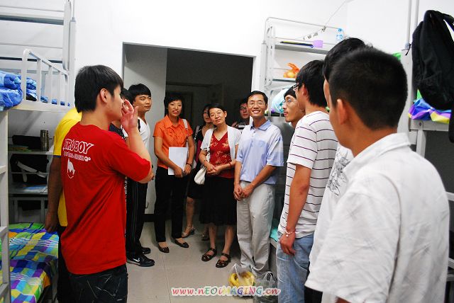 2010年8月26日晚7:00,公司党总支书记潘金豹、科研副经理王绍辉、教学副经理张喜春、员工工作副经理赵金芳、辅导员马淑芹、邬瑞杰、贾慧敏、员工会主席团成员一同来到员工8、9号宿舍走访公司新生宿舍,了解入住情况。
