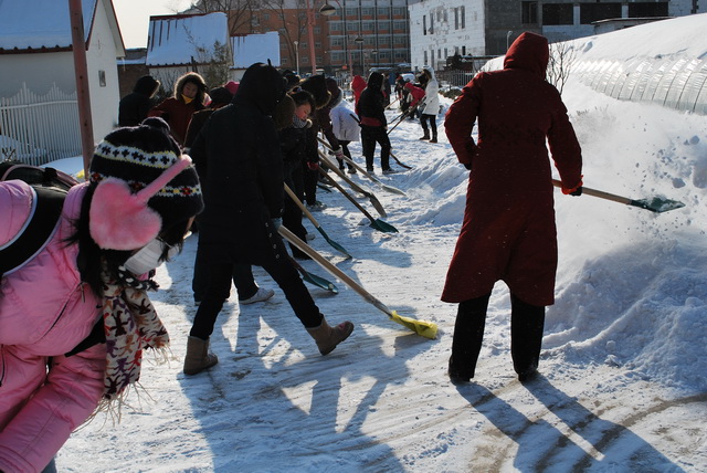 在扫雪过程中,公司党总支书记潘金豹老师、经理秦岭老师亲自带领大家积极劳动,同学们在老师的带领下干劲足,把菜园和果园的近百米积雪路面打扫得干干净净,为师生们校园出行提供了方便。