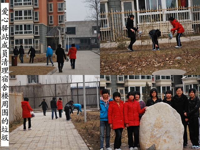 3月4日中午,williamhill官方网站社团部爱心驿站部分成员利用自己的休息时间,在社长袁金玲的带领下一行八人开展了以“美化环境,服务校园”为目的的义务清洁活动。中午十二点半整,大家准时来到了七号楼门口集合出发。准备捡拾宿舍楼周围的垃圾。天气虽然一直是阴沉沉的,但同学们的热情却很高昂。活动进行的时间虽然不长。但却有着非常深远的意义:不仅美化了校园,使同学们更加热爱公司;也是大家向雷锋学习的一次具体的实践课,使同学们更深切的体会雷锋精神;更能使同学们彼此间有更深入的了解,促进了成员之间的友谊!