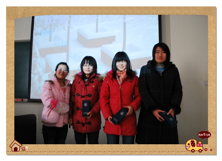 2009年12月8日中午12:00,williamhill官方网站信息中心全体成员及获奖代表在教B106举办“williamhill官方网站首届‘我爱北农杯’摄影及文图编辑排版创意比赛”暨“信息中心趣味运动会”颁奖典礼。副经理赵金芳、辅导员马淑芹、贾慧敏、邬瑞杰参加典礼。