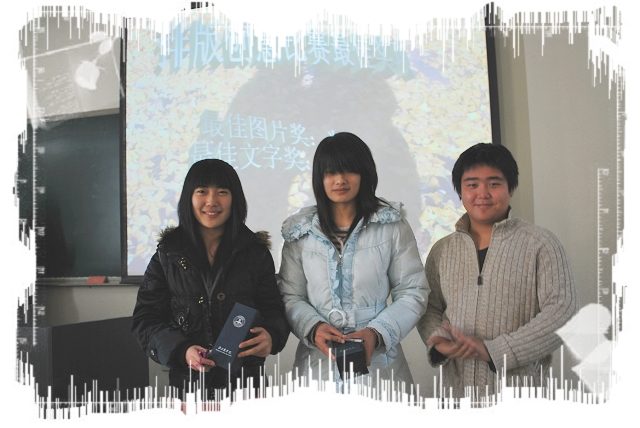 大会首先展示了由信息中心技术部制作的摄影及排版比赛的作品视频。柔和的音乐、精美的照片、优美的文字无不映照出北农的美丽,同学们的积极参与,用心寻找的北农角角落落的风景,为大会增添了的气氛。相机记录的不仅是风景的美丽,更是每位同学对校园的深刻记忆。大大小小的故事在流畅的文字中真实感人,校园的点滴在一个个的方块字中毫不逊色的展示着.掌声不断,喝彩连连,大家用心发现的美得到了大家的肯定和赞美。与会领导老师及信息中心主席团成员为获奖者颁奖并表示祝贺。