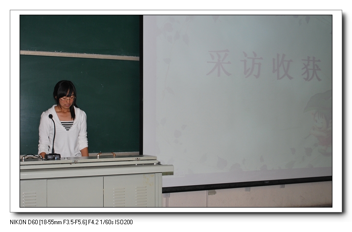 今年6月,在2005级学哥学姐们即将走上工作岗位时,就业部的全体成员对个别同学进行了采访,之后整理采访内容,撰写心得。几位同学先后上台发言,和在场的同学老师一起分享了他们采访时的经验和感受。