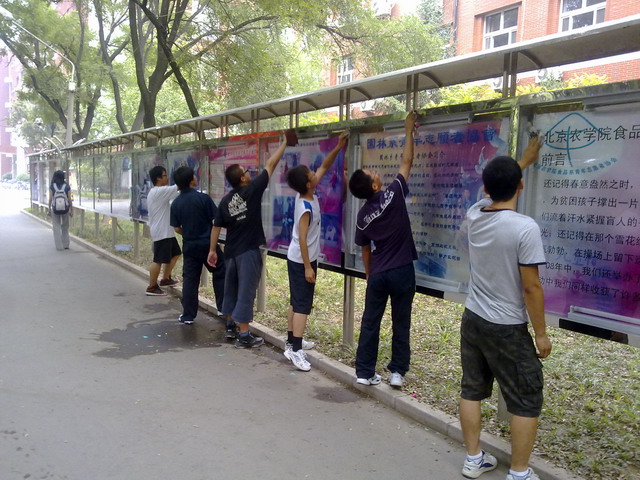 同学们不怕苦、不怕累、不怕脏,在班委的带领下,分工有序、忙而不乱,四十几个布满灰尘和污渍的报刊栏经过一个小时的清洁重现光鲜闪亮的容貌,同学们脸上也洋溢着自豪的笑容。同学们的义务之举得到了院里老师的赞赏。