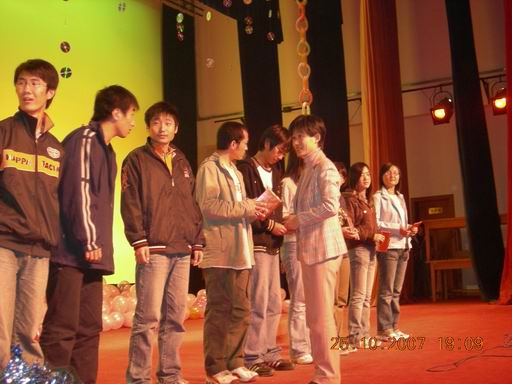 此次晚会还举办了“卫生先进宿舍”评比活动和课间操比赛的颁奖仪式,到场的老师分别为优秀宿舍和优秀集体颁奖。在207252班手语表演《童话》结束后,此次晚会完满谢幕。