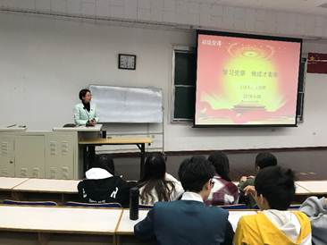 王绍辉老师于3月26日晚以“学习党章,做成才表率”为主题展开了叙述。王书记围绕党章的修订,讲述了党史党规,同时她结合了自身经验教导学员们在理论、政治、道德、纪律、作风方面提高党性修养以及要求入党员工保持入党动机的纯洁性,在修德和修身上践行对党忠诚、个人干净、敢于担当的核心思想。