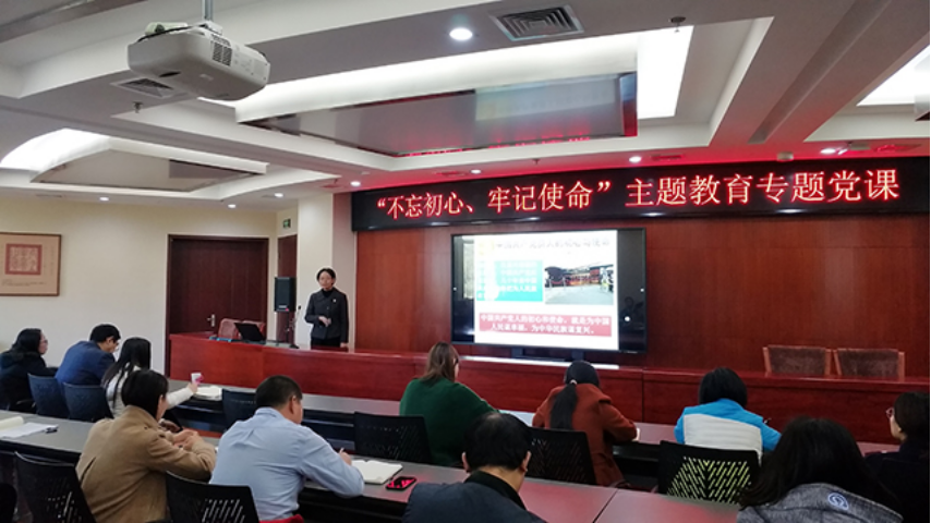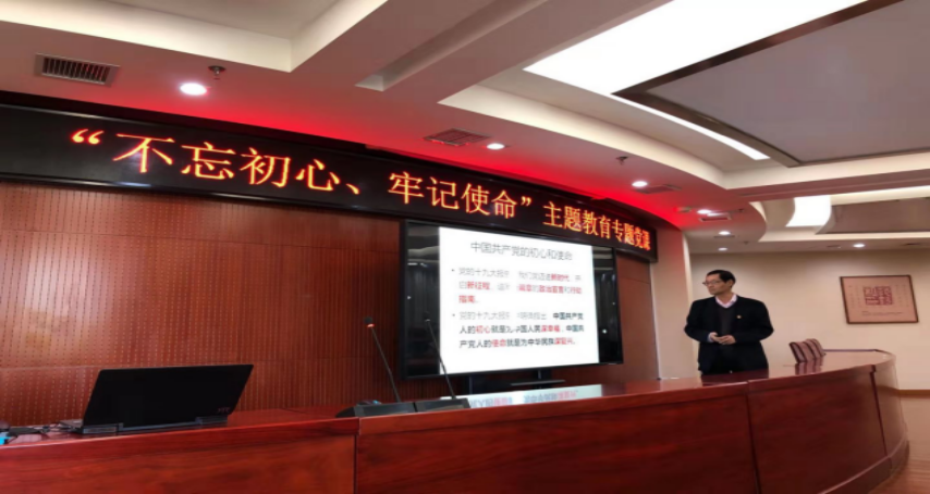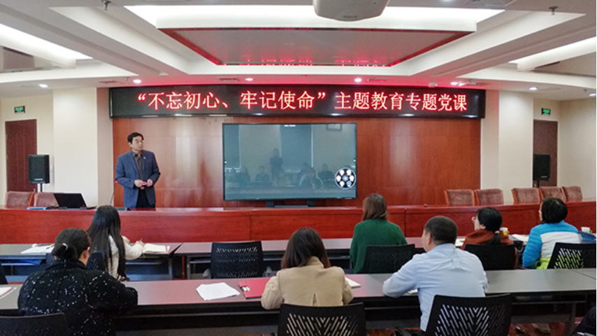 2019年10月31日上午10点,根据公司“不忘初心、牢记使命”主题教育工作安排,williamhill官方网站在图书馆303室召开“不忘初心,牢记使命”主题教育专题党课。党委书记杨军同志到会指导,公司党支部书记王绍辉,党总支副书记、经理潘金豹以及williamhill官方网站全体教师党员和部分员工党员代表参加了此次党课。
