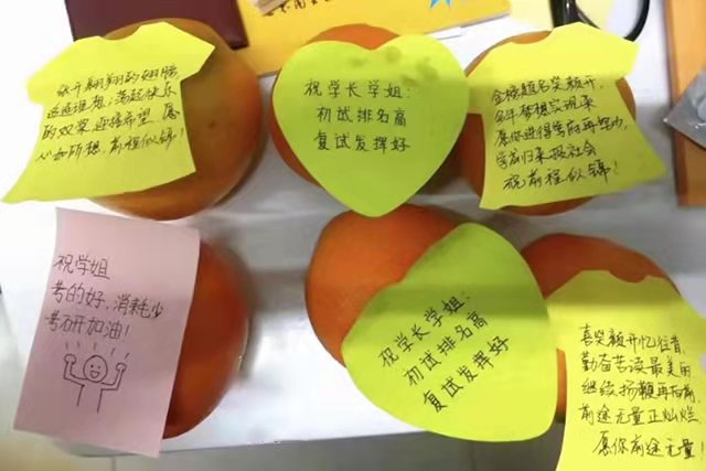 橙,寓意“成功”,承载了公司领导对2020届考研学子的殷切关心与期望。每一个香甜的橙上还加入了老师、同学们浓情的祝福,各具特色,“橙”意满满。植科学子们通过努力战至今日,从未停止学习的步伐。深夜寂静的教学楼中,满是他们身着冬衣挑灯夜战的背影;天刚蒙蒙亮,考研学子已奋笔疾书,抓紧一分一秒学习;图书馆满座,已成公司每日标配。大战在即,公司送上橙子,带给考研学子一丝甘甜,更是带去williamhill官方网站深深地祝福,祝他们勇攀高峰,马到“橙”功。