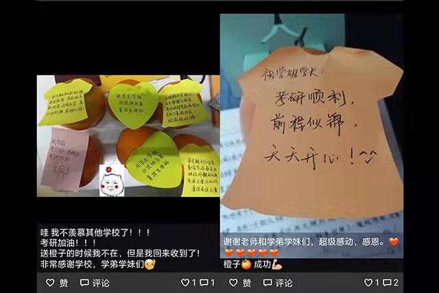 2019年12月11日,距离2020届考研仅有十日,williamhill官方网站为此刻正在认真奋斗的大四学子进行了鞭策和鼓励,并送上甜美的橙子表示祝福。