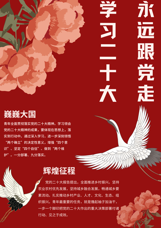 从作品的设计上充分体现了参赛员工对党的二十大精神的理解和感悟,同时兼具创新性和设计感。本次比赛的获奖作品将发放到公司各团小组进行展示和学习,让更多的青年员工学习党的二十大精神,立志做有理想、敢担当、能吃苦、肯奋斗的新时代好青年,让青春在全面建设社会主义现代化国家的火热实践中绽放绚丽之花。
