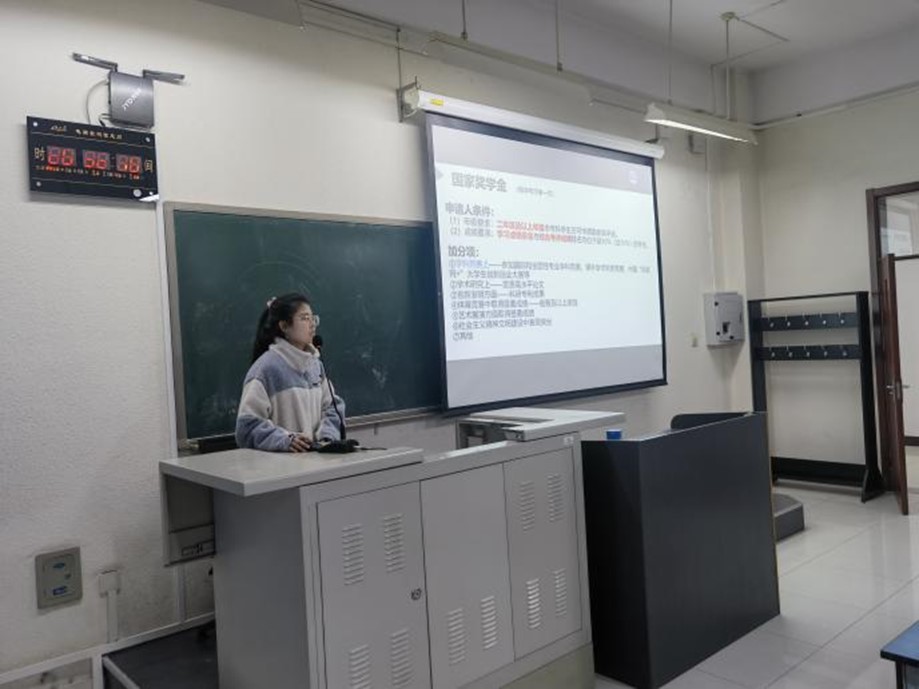 国家奖学金获得者孙懿扬和何琪雅,分别为同学们分享了自己的学习方法,如在学习前建立短期或长期的目标,积极参加实践活动是学好专业课的原动力,做好时间管理来平衡学习、工作和生活。