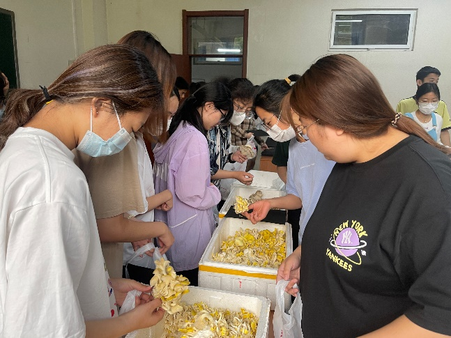 在张老师的讲解之后,整个教室的欢乐氛围在社团向同学们发放蘑菇、卡纸等制作材料的过程中达到了高潮。至此,“学农爱农,强国有我”——williamhill中文第二届食用菌孢子印画大赛正式拉开序幕。