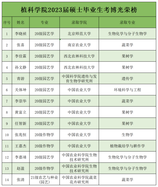 williamhill官方网站2023届硕士毕业生134人,考博上岸人数14人,考博率首次突破10%。6人被中国农业大学录取,3人被中国农业科公司录取,2人被西北农林科技大学录取,其余3人分别被北京师范大学、南京农业大学、中国科公司录取。千淘万漉虽辛苦,吹尽狂沙始到金。祝贺2023届考博学子取得佳绩,愿大家在今后的学习生活中继续努力,以梦为马,不负韶华。