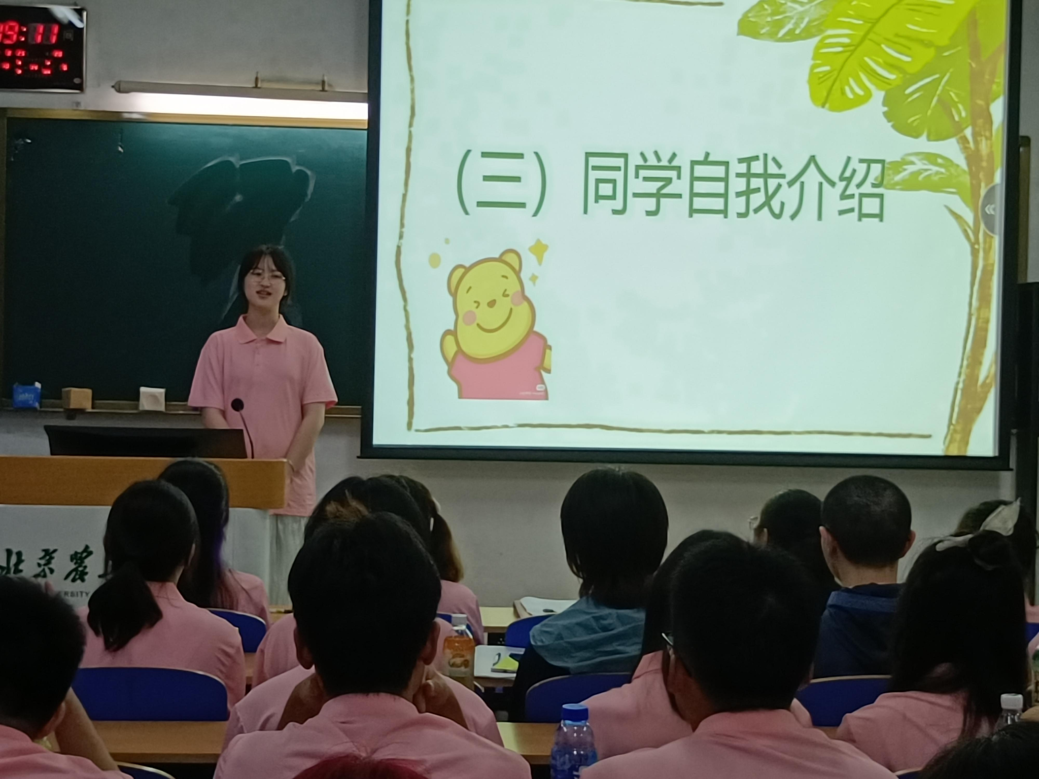 园艺2班的同学们踊跃上台进行自我介绍,在其乐融融的班级氛围中开启了他们大学四年的珍贵时光。